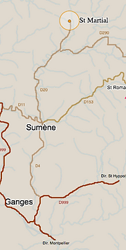 Nous nous trouvons entre chênes, châtaigneraies, arbousiers et bruyères. Dans la zone périphérique du parc naturel des Cévennes, le plus au sud de ce vaste territoire: les Cévennes méridionales.